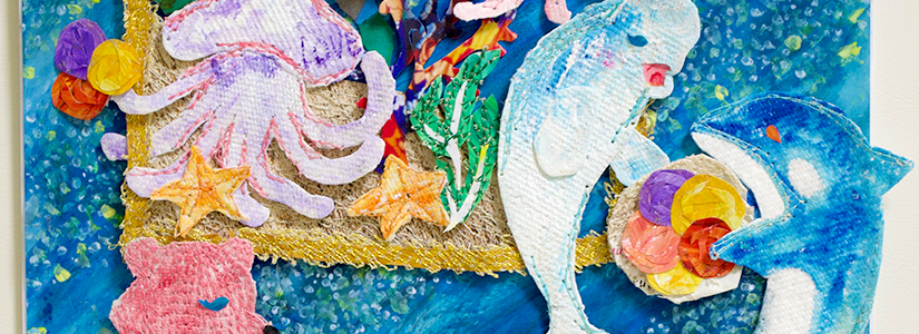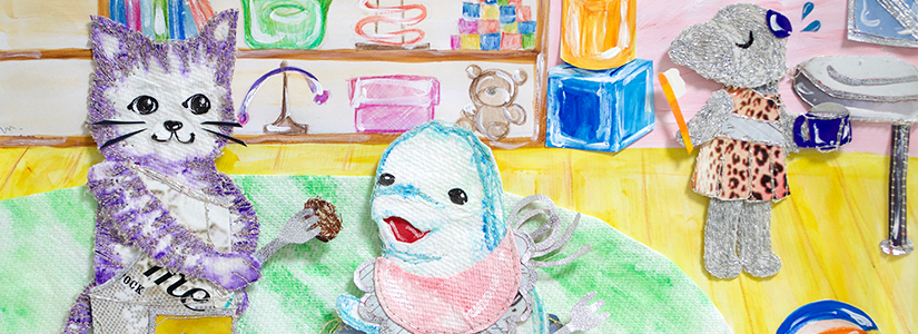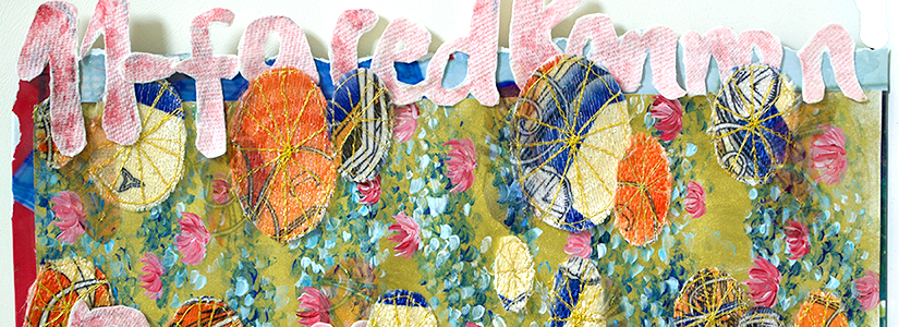 コラージュを縫い上げる技法で、